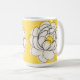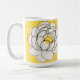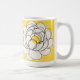 Make a statement with this vibrant Bold Yellow Peony Mug. This modern design features a striking black line art illustration of a full peony blossom set against a bright yellow and cream background. The graphic, stylized approach brings a contemporary and bold twist to the classic floral theme.