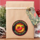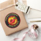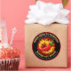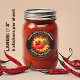 Pfeffer aus rotem Chili mit Flammenkreis. Roter, nahtloser Musterhintergrund. Vier Textfelder zum Anpassen.
