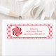 Dieses Adressetikett zeigt den roten Text in einem dekorativen Schriftart neben einem runden, rot-weißen Pfefferminzbonbons, der über einen Hintergrund von Pfefferminzbonbons in einem Polka-Dot-Muster wirft. Personalisieren Sie dieses Weihnachtslabel mit Ihrem eigenen Namen und Ihrer eigenen Adresse oder einer eigenen Nachricht. Sie können auch gerne: