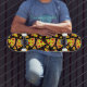 Schwarzes Skateboard gemustert mit roten und gelben Pepperoni-Pizzaslicen