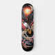This powerful skateboard design features a majestic peregrine falcon in motion, symbolizing speed, precision, and freedom. Set against a backdrop of a rising sun, swirling smoke, and falling cherry blossoms, the artwork blends traditional Japanese ink illustration with modern street art energy. Bold outlines, deep shadows, and rich gold and red tones bring the falcon to life, making it a perfect fusion of nature, strength, and warrior spirit. Designed in a 1:3 aspect ratio, it fits perfectly on longboards or skate decks, emphasizing motion, balance, and intensity.