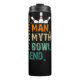 Diese Grafik zeichnet sich durch ein Vintages Design für einen Bowling-Enthusiasten aus. Es enthält drei Bowling-Buttone und den Text "VATER. DER MANN. DER MYTH. DER BOWLING LEGEND.' in gestapelten, mehrfarbigen Schriftart mit einem bedrückten Aussehen. Es ist eine lustige und feierliche Grafik, die perfekt für einen Vater, der Lieben zu schüssel.