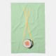 Japanisches Essen, Lachs-Sushi mit Stäbchen, Fisch und Reis-Illustration.