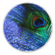 Die Pfaufeder schaut gegen den lila Hintergrund perfekt.