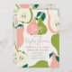 Diese niedliche und moderne "kleine Süsse ist unterwegs"-Einladungskarte für Paare/Brautparty/Interaktion mit rosa und grünen Birnen und Birnenscheiben auf einem cremefarbenen Hintergrund gerahmt durch eine hellgrüne Grenze. Die Rückseite weist einen hellgrünen Hintergrund mit Birnen-Mustern auf. Personalisieren Sie es für Ihre Bedürfnisse. In meinem Geschäft finden Sie passende Produkte.