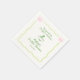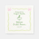'She Found Her Perfect Matcha' Brautparty-Servietten mit einem weichen, grünen und rosa Squiggle-Rahmen mit Bögen, einer niedlichen handgezeichneten Matcha-Schüssel-Abbildung und eigenartigen handgeschriebenen Schriftart.