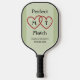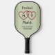 "Perfect Match" monogramm Pickleball Paddel mit einem tollen Hochzeitthema. Eine lustige Art, Ihre Hochzeit zu feiern. Fügen Sie dem Paddel das gewünschte Monogramm, den Namen, die Initialen, die Phrase und das Datum hinzu. Modernes Design mit schlauen grünen Farben mit roten Herzen. Verwenden Sie die Vorlage, um Ihr eigenes Paddelpaddel im Monogramm zu erstellen.