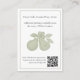 Füllen Sie Ihr Brautparty mit dieser koordinierenden Registrierung und Detailkarte aus, die auf unsere "Perfect Pear" Sali Green French Country Damask Suite abgestimmt ist. Mit handgezeichnet Birnen-Kunstwerken, eleganter Typografie und einem optionalen QR-Code für einen einfachen Registerzugriff ist dieser Einsatz sowohl schön als auch funktional. Benutzen Sie es, um Registrierungsdetails, Kleidercode, Parkhinweise oder weitere Informationen mit Ihren Gästen zu teilen. Paarung mit passenden Einladungen und Accessoires aus der gesamten Kollektion für eine zusammenhängende Brautfeier.