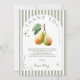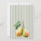 Diese Perfect Pear Dankeschön-Karte Krawatte Ihre Feier zusammen mit Charme und Eleganz. Es ist mit Aquarellbirnen, sanften, grünen Streifen und eleganten Retroakzenten gestaltet und ist der ideale Weg, um nach einem Brautparty, einer Pärchendusche oder einer Verlobungsfeier Dankbarkeit zu zeigen. Der zeitlose alte Geldstil macht es vielseitig für jedes klassische Ereignis, während er das spielerische "perfekte Paar"-Thema lebendig behalte. Pair es mit passenden Einladungen und Begrüßungsschildern für ein nahtloses Set, das die Gäste lieben werden.