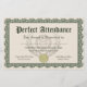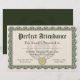 Perfect Attendance Award in schönem Grün und Bräune mit einem goldenen Siegel. Zeigen Sie Ihre Anerkennung und herzlichen Glückwunsch an die Studenten und Mitarbeiter mit diesem maßgeschneiderten, personalisierten offiziellen Zertifikat. Fügen Sie Ihren eigenen Detailtext online hinzu, und bestellen Sie individuell gedruckte Zertifikate für Ihre Zeremonie.