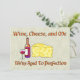 Die Flasche mit gut gealtertem Wein und ein Keil mit perfektem Käse summieren ihn. "Wein, Käse und ich. Wir sind bis zur Perfektion alt."