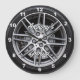 A photo of a sports car performance tire forms the background of this clock which is ready to be personalized with your own custom text in white script lettering.