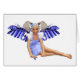 Diese süße kleine Fee ist in einem niedlichen, blauen Gingham Pinavorkleid gekleidet, hat blonde Pigtails und schöne große blaue Flügel aus Blume Blätter.