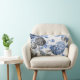 Ein blau-weiß Vintager botanischer Blumenkissen.
