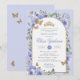 Periwinkle Blue Watercolor Golden Butterfly Quince Einladung
