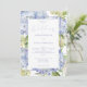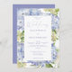 Die Blume sind in Aquarellblau und Weiß gehalten, die Hydrangea-Wände sind mit einem dünnen Eckrahmen um einen weißen Mittelpunkt angeordnet. Der Rücken ist entweder in einem allumfassenden Design der Hydrangeas oder in einem massiven periwinkle blau erhältlich. Diese Karte ist Teil der Blume "Periwinkle Blue & White Hydrangea" Hochzeitssuite mit Karten, die von der "Simply Farmhouse Press" erstellt wurde.