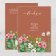 Eine wunderschöne Aquarellfarben-Wildblume und das Hochzeitsdesign von Periwinkle. Ein einzigartiges Design, das rustikale Vintage botanische Blumen verwendet. Ein elegantes, orangefarbenes Retro-Retro-Design mit viel Grün. Eine Wildblume und Periwinkle Hochzeit danken Ihnen Kartendesign mit modernen Elementen. Auch die passenden Hochzeitseinladungen und andere Schreibwaren sind verfügbar.