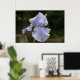 Hübsche zarte periwinkle hellblaue lila Iris-Blume mit gelbem Bart mit Regenfällen auf den Blütenblättern während eines Frühlingsregens. Original Fotografie © TamiraZDesign.