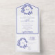 Periwinkle Leafy Wappen Monogram Wedding All In One Einladung
