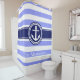 Periwinkle Navy Blue Rugby Stripe Anchor Monogram Duschvorhang