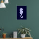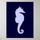 Die Form eines Meerpferdes in hellen Perkellblau auf einem dunkleren Blau.