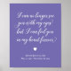 Dieses schöne, lila und weiße Denkmalzeichen ist eine passende Art, sich an das zu erinnern und zu ehren, das vergangen ist, aber Sie werden immer Liebe und Erinnerung. Es enthält den Text "Ich kann dich nicht mehr mit meinen Augen sehen, aber ich kann dich in meinem Herzen für immer fühlen" mit einem Herz und deinem Text unten.