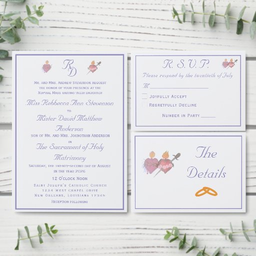 Periwinkle Two Hearts Catholic Wedding Invitation Einladung