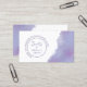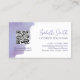 Elegante lila und weiße Visitenkarte für ein kleines Unternehmen in der Beauty- oder Veranstaltungsbranche mit Ihrem Firmennamen in einem einfachen Kreis mit der rund um den Kreis geschriebenen Website. Die Visitenkarte für die Schönheit wird so gedruckt, als ob sie in einer lila Aquarellfarbe getaucht wäre. Auf der anderen Seite finden Sie Ihren QR Code mit Ihrem Social Media Handle darunter. Fügen Sie Ihren Namen in einem hübschen Skript mit Ihrer Kontaktinformation unten hinzu.