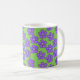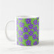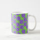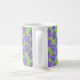 Diese Tasse hat eine Feder-Design eines Feldes von periwinkle Blume auf einem grünen Hintergrund.