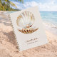 Ein beige Hintergrund. Dekoriert mit einer wasserfarbenen Muschel, Jakobsmuscheln mit Perle im Inneren. Personalisieren und fügen Sie einen Namen und Text hinzu. Für die Schule, arbeiten Sie als Skizze, Tagebuch und Journalismus.