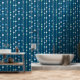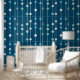 Blau, grün, grau und weiß Perlen, Regentropfen oder Perlen auf dünnen weißen Streifen. Der dunkelblaue Hintergrund Weich blauer Hintergrund Pleasant uneinheitlich wiederholtes abstraktes Muster wie ein beateter Vorhang kann verändert werden, um den Anzug Ihrer Dekoration zu erhalten