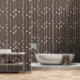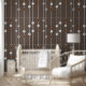 Braune, graue und weiße Perlen, Regentropfen oder Perlen auf dünnen weißen Streifen. Geruchener brauner Hintergrund. Uneinheitlich wiederholtes abstraktes Muster Die Hintergrundfarbe kann je nach Dekorationsbedarf geändert werden