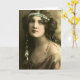 Vintage Fotografie einer hübschen jungen Frau mit dem langen Haar. Sie hat lange Schnüre der Perlen, die über ihren Schultern und Perlen in ihrem Haar und über ihrer Stirn hängen