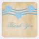 Elegante und raffinierte Perlen und Blume Wedding Danke Stickers mit einem dreifachen Strang von blauen Perlen, ein Trio von delikaten hellblauen Blumen und einem antiken strukturierten bräunlichen Hintergrund. Dieses schöne Design ist perfekt für jede Blumenhochzeit. Passen Sie diese hübschen Aufkleber mit Ihrem eigenen Text an, z.B. die Einzelheiten Ihrer Hochzeit.