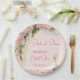 Perlen und Prosecco Brautparty rot rosa Korallen elegante monogramm gedruckte Papier Teller Vorlage weichen rot rosa Rosen und Perlgarnen Glas Wein Perlen Thema Party personalisiert Geschirr Tisch Dekoration