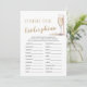 "Pearls and Prosecco Finish the Bride's Phrase Game" ist eine lustige und einnehmende Aktivität, die Gäste einlädt, Phrasen oder Sätze zu vervollständigen, die von der Braut begonnen wurden. Die Teilnehmer nutzen ihre Kreativität und ihr Wissen über die Braut, um ihre Vorlieben, Erinnerungen oder Gefühle zu erraten. Dieses Spiel wird durch die Eleganz der Perlen und den bläsernen Charme des Prosecco noch verstärkt und fördert das Lachen und die Kameradschaft unter den Gästen. Es verleiht dem Brautparty eine Touch der Raffinesse und schafft gleichzeitig unvergessliche Momente für die Braut und ihre Lieben, um gemeinsam zu genießen.