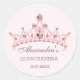 Quinceanera Aufkleber mit Prinzessin Tiara mit digitalen Bildern von rosa Perlen und braunen Edelsteinen in Herzform . Die Hintergrundfarbe kann geändert werden
