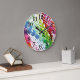 10,75" runde Acrylwand mit einem Bild eines Teils eines bunten Perlenvorhangs. Die gesamte Disco 70er Clock-Sammlung im DECOR | Uhrenabschnitt.