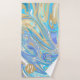 Perlescent Aqua & Gold Liquid Marmor & Monogram Badhandtuch Set
