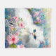 Persian Cat Blue Eyes in Pink Flowers Personalized Fleecedecke