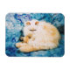 Dieser Foto-Magnet wird Ihren Kühlschrank oder jeden Bereich mit einem Bild einer Perserkatze auf einer blauen Bettüberdecke erhellen.
