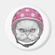 Dieses Design zeigt ein Portrait einer persischen Katze mit einem rosa Motorhauerhelm.