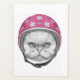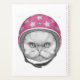 Dieses Design zeigt ein Portrait einer persischen Katze mit einem rosa Motorhauerhelm.