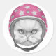 Dieses Design zeigt ein Portrait einer persischen Katze mit einem rosa Motorhauerhelm.