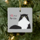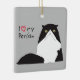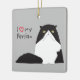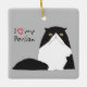 Eine niedliche grafische Abbildung einer schwarz-weiß flauschigen Perserkatze schmückt beide Seiten dieses Ornaments.