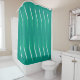 Dieses Kunstwerk schafft ein ausgeprägtes Zusammenspiel von dschungelgrünen und weißen geometrischen Formen mit einem lebendigen persisch-grünen Hintergrund, was zu einem belebenden geometrischen Duschvorhang-Akzent führt.