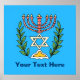Dieses Bild wurde aus einer antiken persischen jüdischen Fliese mit einer Menorah mit einem Magen David (Stern von David) gerahmt von Olivenzweigen. Die Unvollkommenheiten des originalen, handbemalten Bildes wurden bewahrt.
