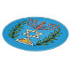 Dieses Bild wurde aus einer antiken persischen jüdischen Fliese mit einer Menorah mit einem Magen David (Stern von David) gerahmt von Olivenzweigen. Die Unvollkommenheiten des originalen, handbemalten Bildes wurden bewahrt.