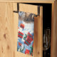 Persische Katze sitzt im Schnee mit Weihnachtshut Geschirrtuch