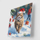 Persische Katze sitzt im Schnee mit Weihnachtshut Quadratische Wanduhr